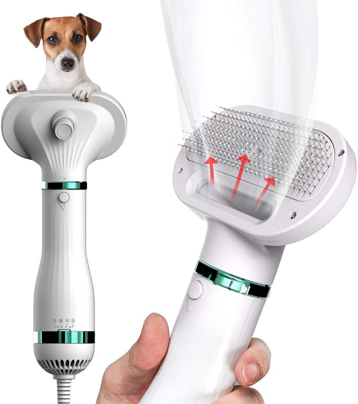 . Este producto ingenioso combina secador de pelo y peine para mascotas.